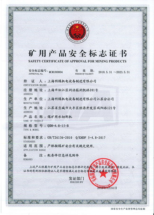 近日,上海科煤接到了榆神煤炭榆树湾煤矿的中标通知书,公司的矿用水切割机(ma标志编号:mcm18004)将被投入该矿的井下操作中。由于水切割机在井下使用具有安全、便携、环保等特色,正在被越来越多的矿山企业在特殊环境下使用。
